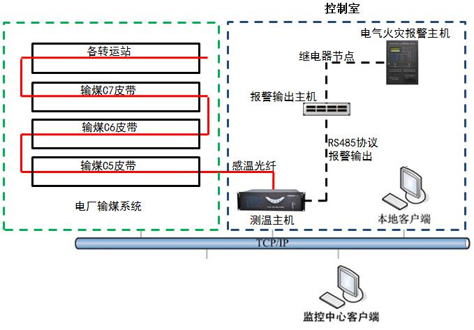 深圳市迅捷光通科技有限公司基于分布式光纖傳感技術研制開發的新型火災探測系統,通過實時檢測感溫光纜中背向散射光信號強度隨溫度的變化情況,可實現對礦井電力系統傳輸電纜及輸煤皮帶的在線實時溫度監控和火災預警報警。